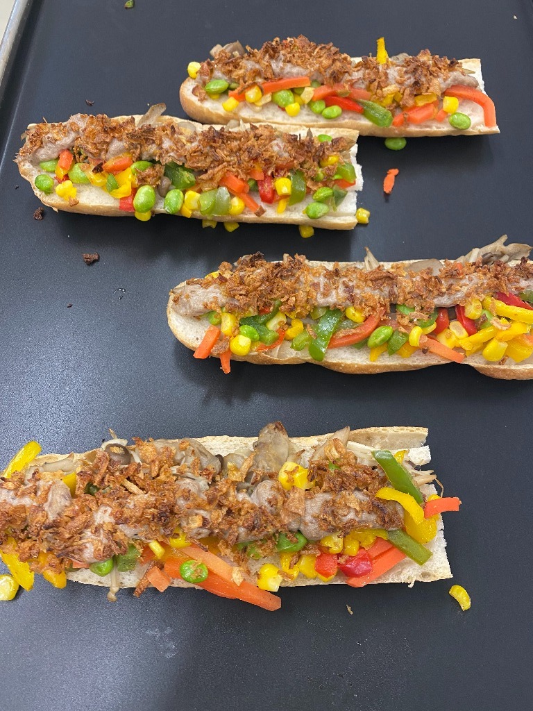 本日のタルティーヌはキノコと彩り野菜と鯖マヨのタルティーヌです。