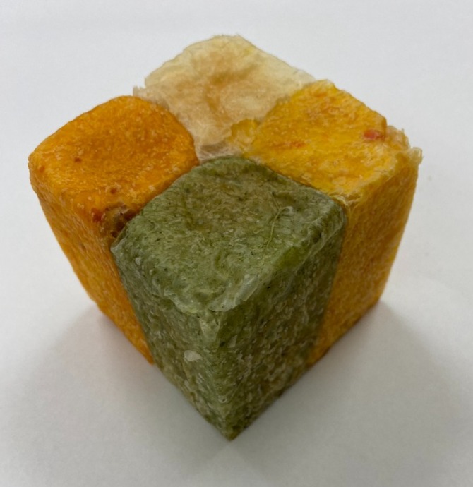 卵、乳製品を一切使用せず、チーズのような豆乳発酵食品やバターのような大豆由来の油脂だけを使用しておいしくもっちり食感に焼き上げました。