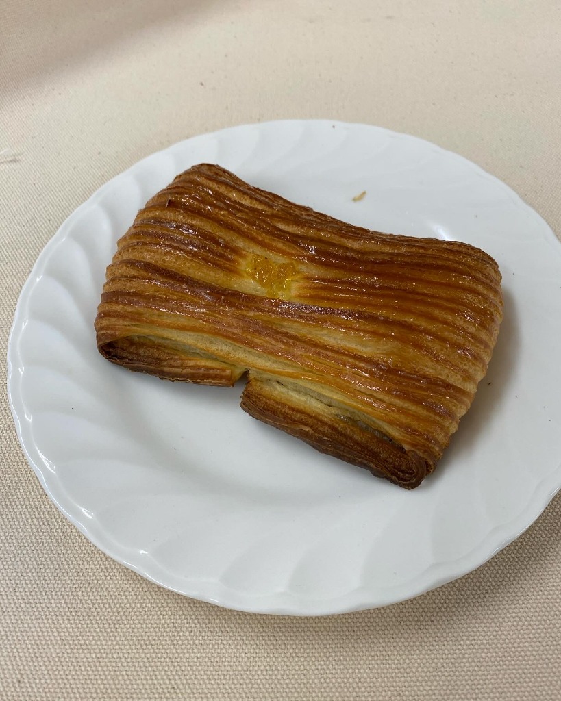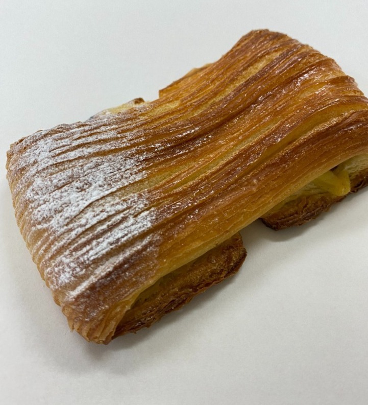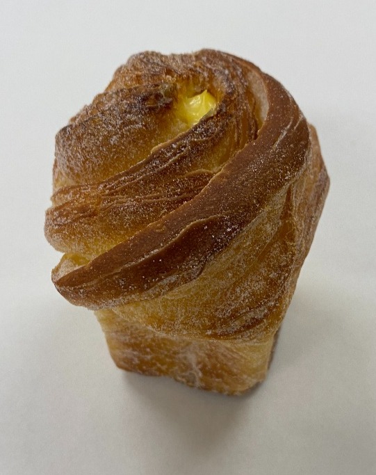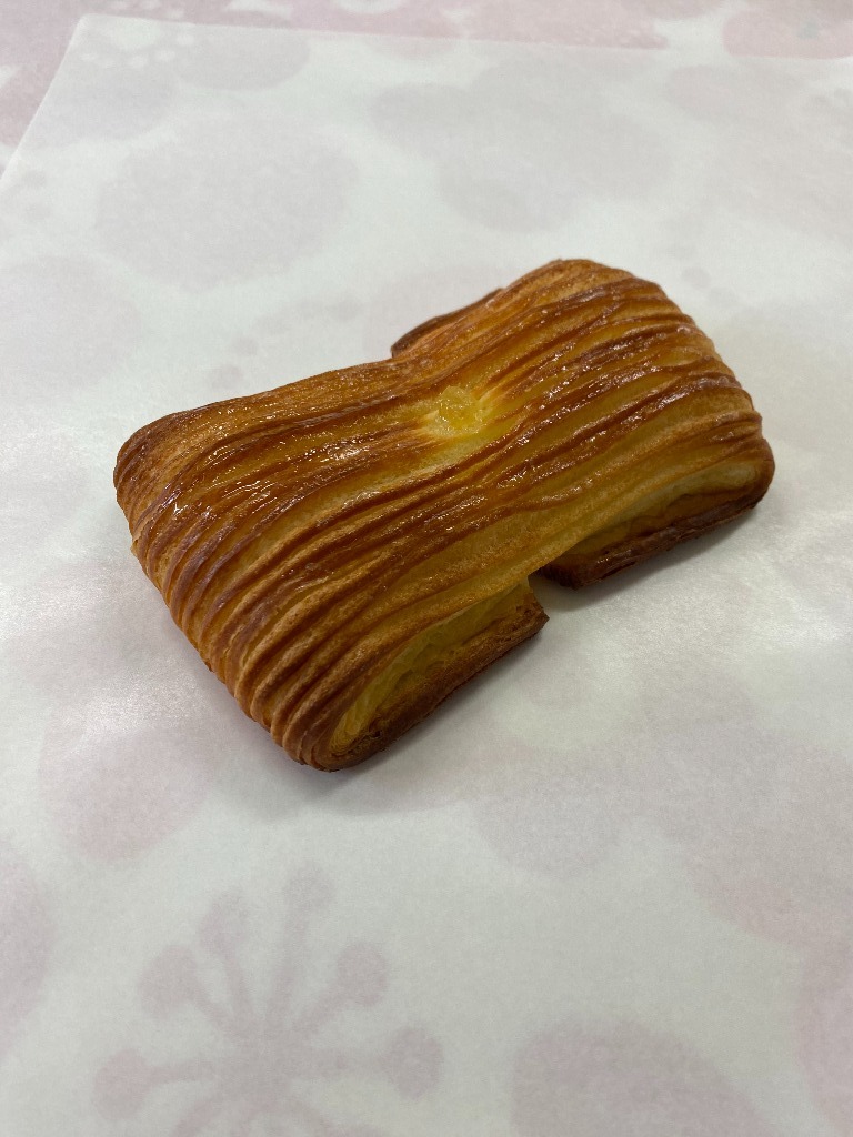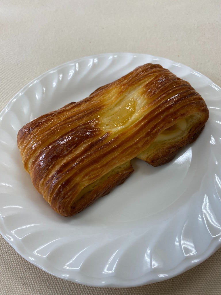 ソフトアイスのような形で生乳カスタードがたっぷり入ってます。デニッシュ生地のクリームパンといった感じです。