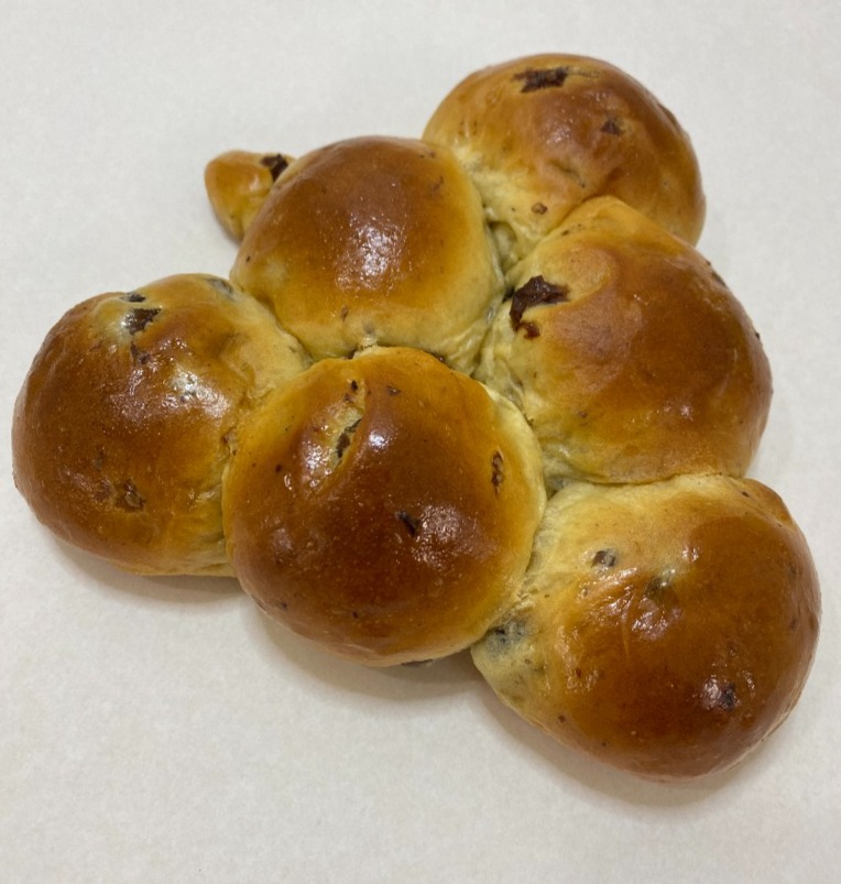 薫り高いラム酒に漬け込んだレーズンをたっぷり練りこんだレーズン生地を、ちぎって食べやすいぶどうの形に成形し焼き上げました。