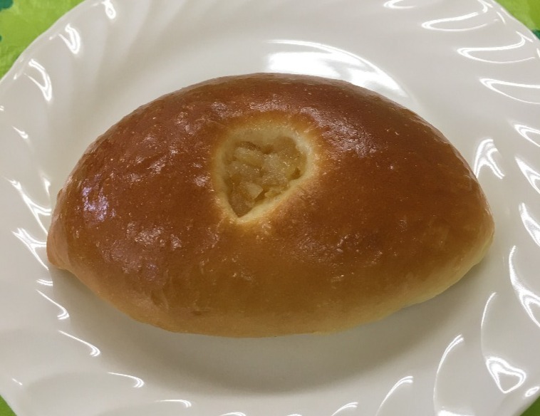カスタードクリーム、甘煮の角切りりんご、シナモンパウダーを組み合わせた鉄板のりんごパンです。