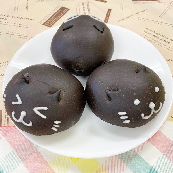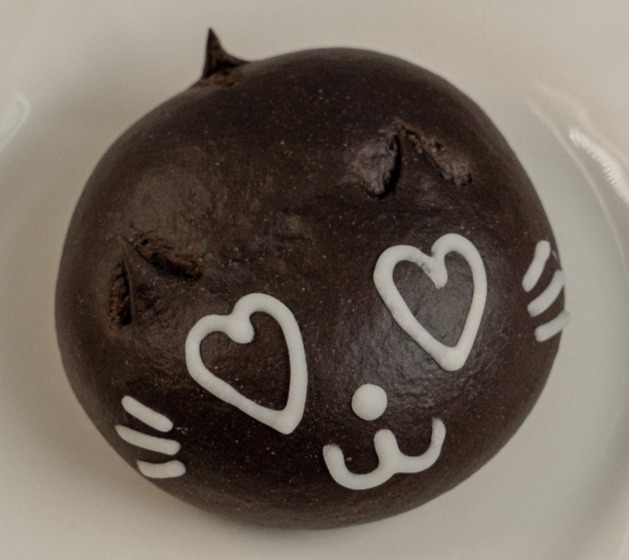 真っ黒なココア生地に、猫ちゃんの顔を描きました。