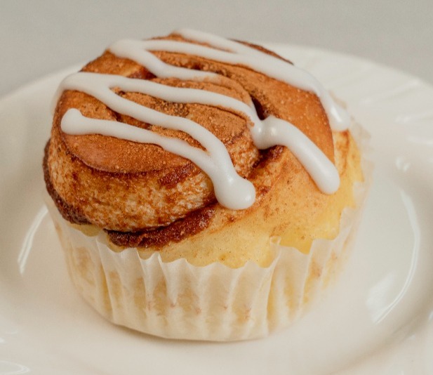シナモンをたっぷり練りこんだミルククリームを巻き込んでカップで焼きました。シナモンシュガーとアイシングで仕上げています。シナモンの香り超強めです。