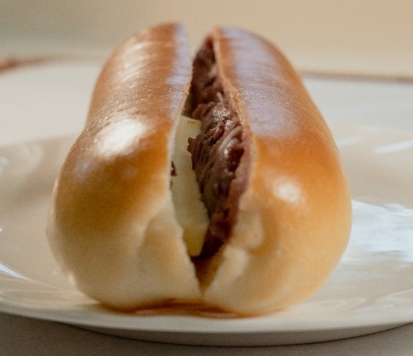 当店の豆乳コッペに茜丸の北海道十勝のつぶあんとよつばの無塩バターを組み合わせました。