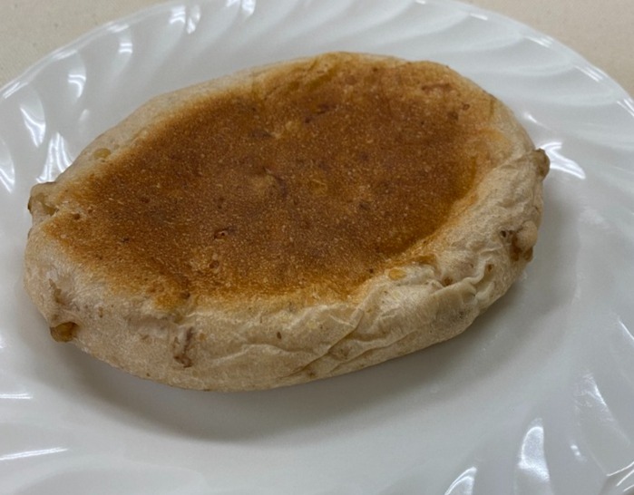 ジャガイモやにんじんなどの具がゴロゴロと入ったカレーを包み、少量のオリーブオイルでヘルシーに焼き上げました。甘口です。