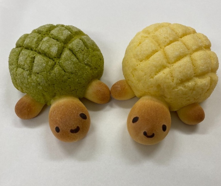 カメの甲羅のメロン皮にはよつば無塩バターと、愛知県産きぬあかりの薄力粉をたっぷり使用しています。