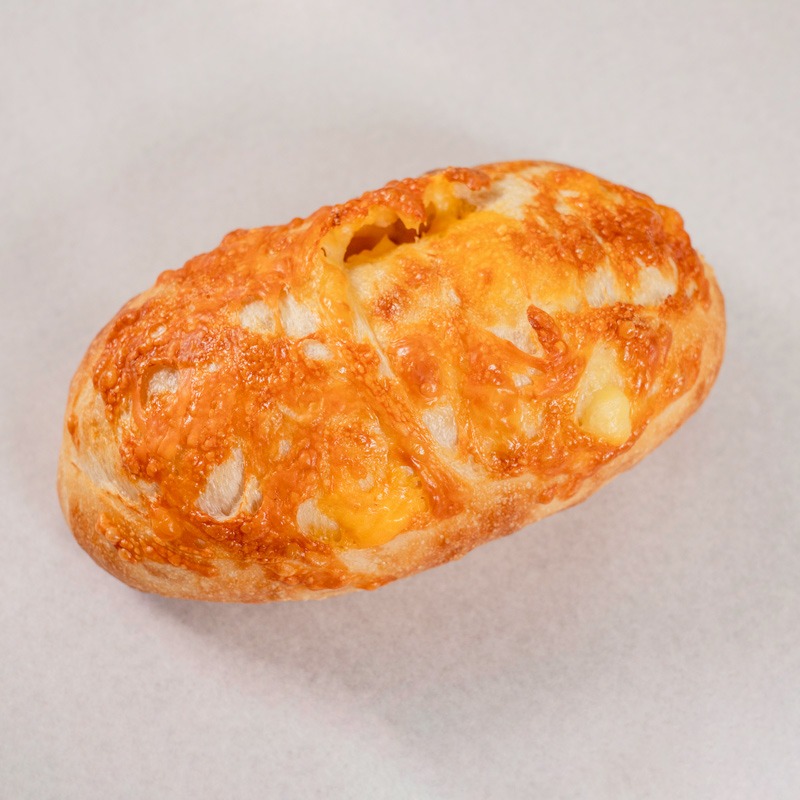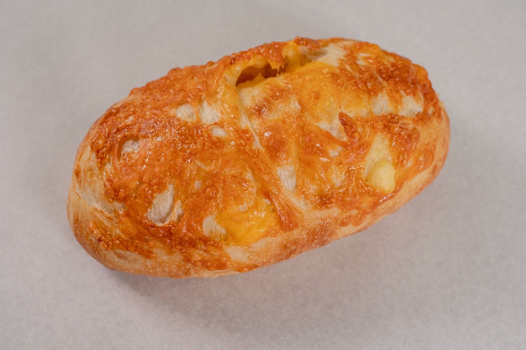 16時間以上の長時間低温発酵させた生地にプロセスダイスチーズ、チェダーダイスチーズ、ゴーダダイスチーズを贅沢に折り込んで焼き上げています。