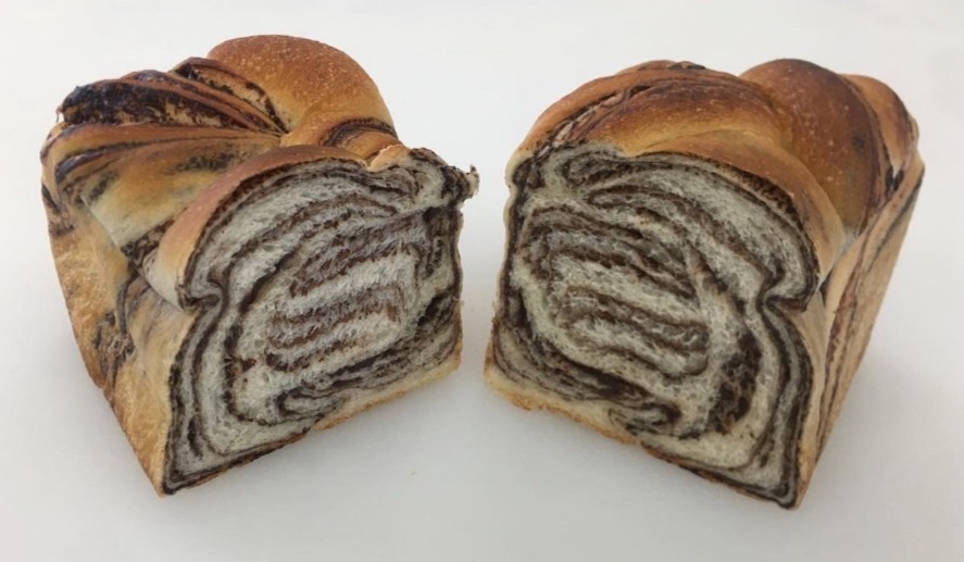チョコレートを折り込んでマーブル状に焼き上げました。ふわふわの食パン生地に